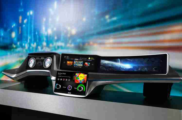 由 5G 和 AIoT 形塑的新智能场域,,促使汽车成为仅次于家庭和办公室的第三重要使用空间,,数码驾驶舱因而成为智能车用技术发展重心。。。PA直营异型切割曲面驾驶舱显示器运用高解析、、、高对比度度、、广视角,,,,以及多片显示屏全贴合技术,,,,衔接搭载 Mini LED 背光的仪表板显示器、、、具备显示区通孔设计的内嵌式触控中控台显示器,,,以及位于副驾的 AHVA 广视角曲面显示器,,,,打造近乎一体成型的超大型驾驶舱显示器。。。。为了提高驾驶安全和便利性,,,用于后视镜的PA直营 9.6寸异型切割 LTPS 显示器具有极窄边框,,,,可切换镜面或 LCD 模式,,,,并有防眩光设计可避免夜间的前灯眩光。。。。
