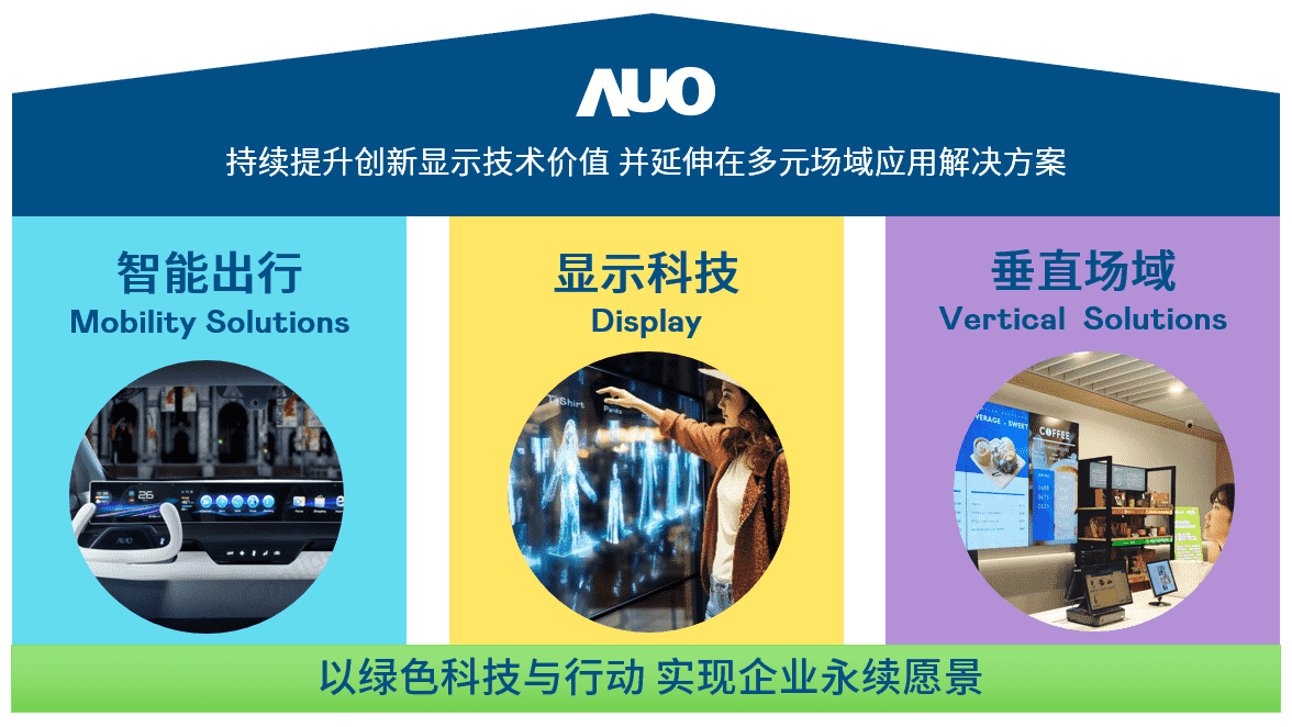 我们持续推动「双轴转型」,,,,在精进显示技术附加价值(Go Premium),,与深化垂直市场应用(Go Vertical)的策略下,,,对应PA直营的优势竞争力与趋势,,,,我们奠定显示科技、、、、智慧移动、、、垂直场域三大永续营运支柱,,在显示技术领域的根基之上,,,,延伸布局多元场域应用解决方案。。。。将先进显示科技助力智慧移动及垂直场域发展,,并以绿色科技与行动为实践,,,,在转型之路上贯彻永续经营之愿景。。。