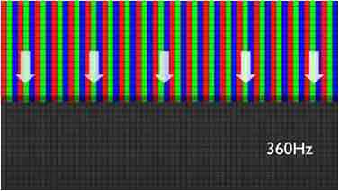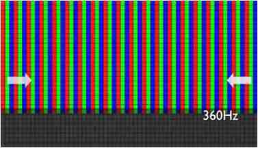 传统液晶驱动是从左到右单向进行,,在画面更新速度愈来越愈快的情况下,,,位于驱动线路末端的右下角区域,,,,画素的闸极来不及在短时间内获得足够电压,,无法显示出正确的颜色资讯。。。 |